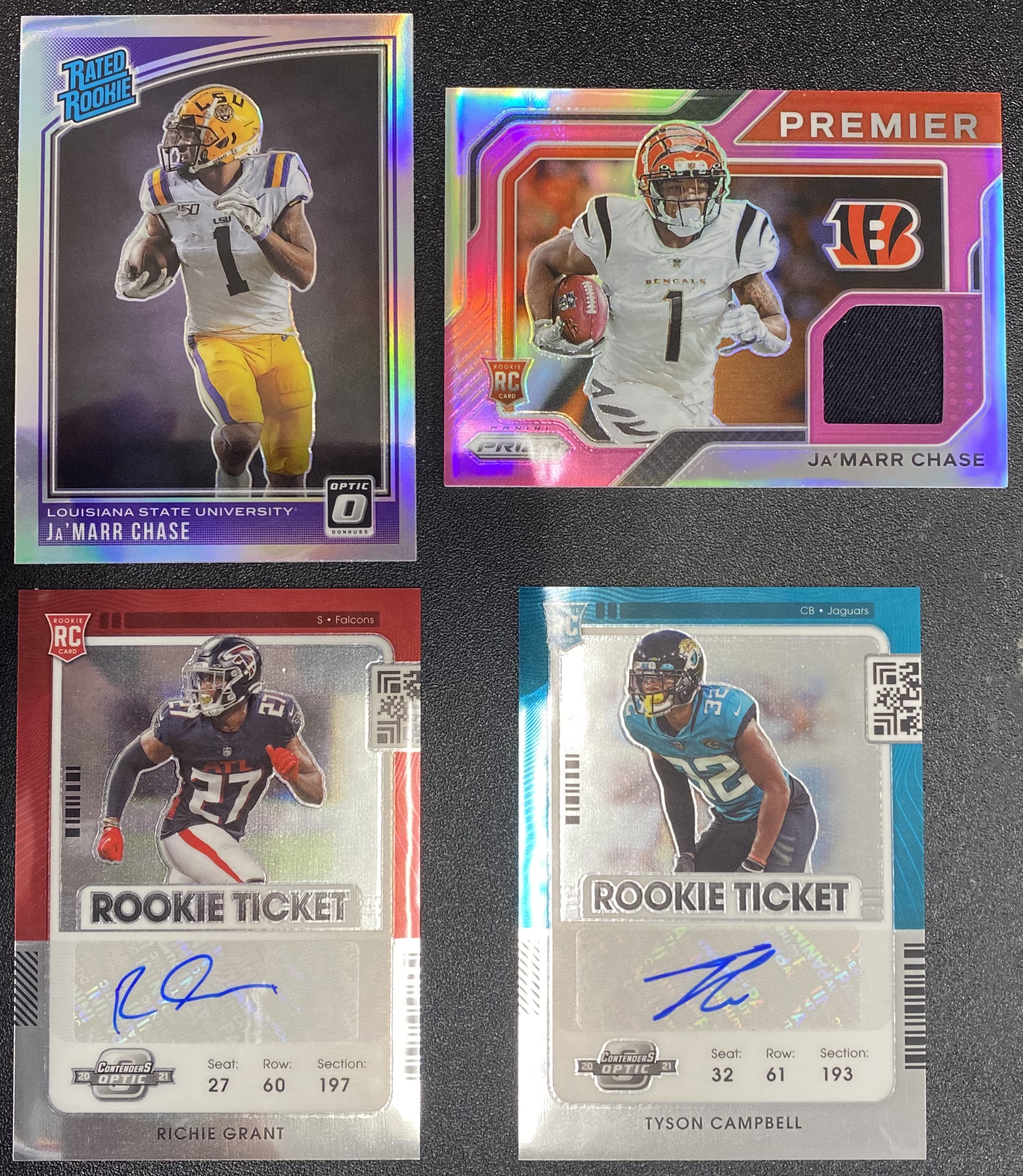 Bengals = Prizm Premier Rookie Patch Pink Prizm + Optic Rated Rookie Silver Prizm Ja'Maar Chase